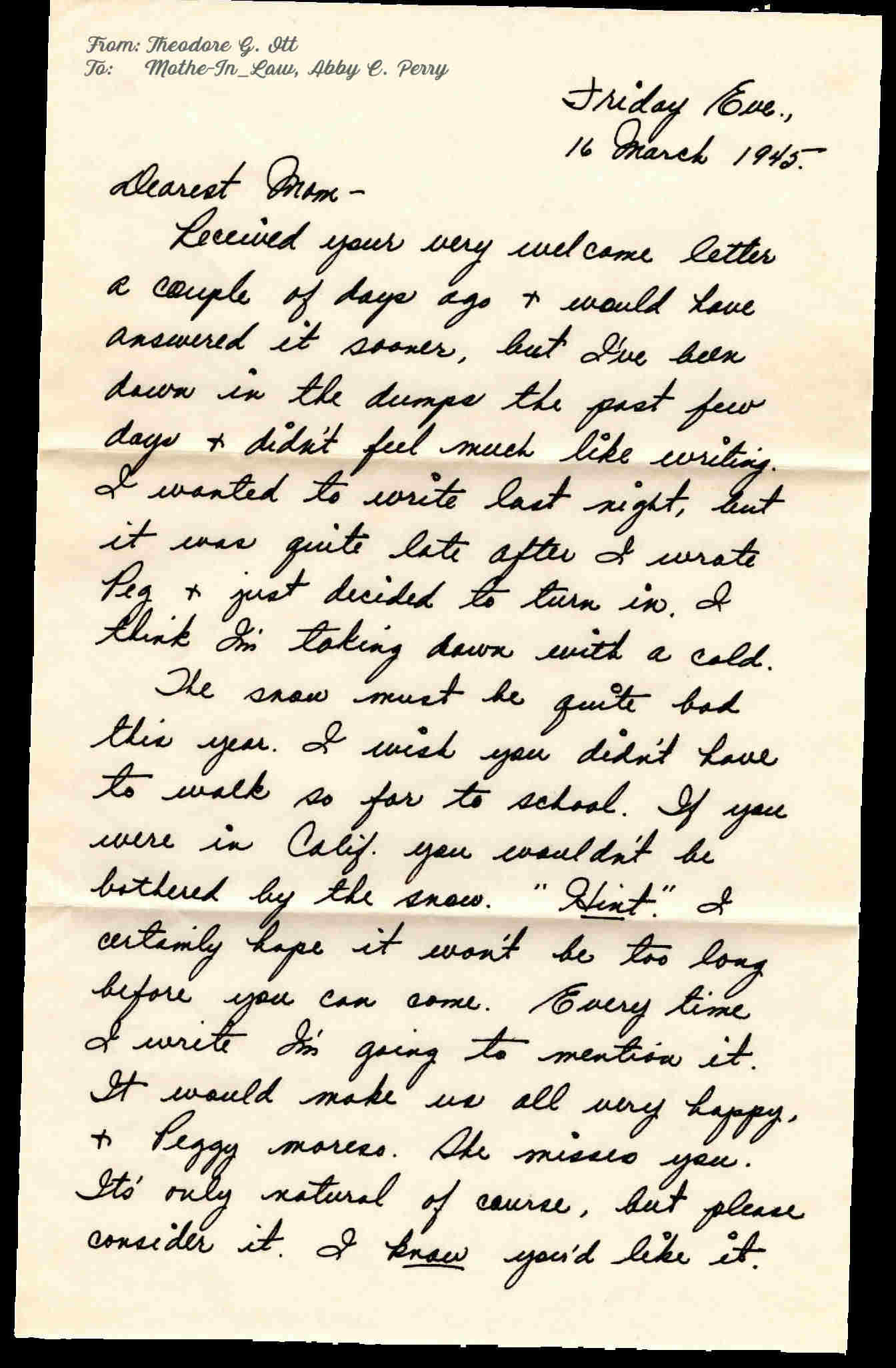 From: Theodore G. Ott To: Mother-in-law Abby Perry