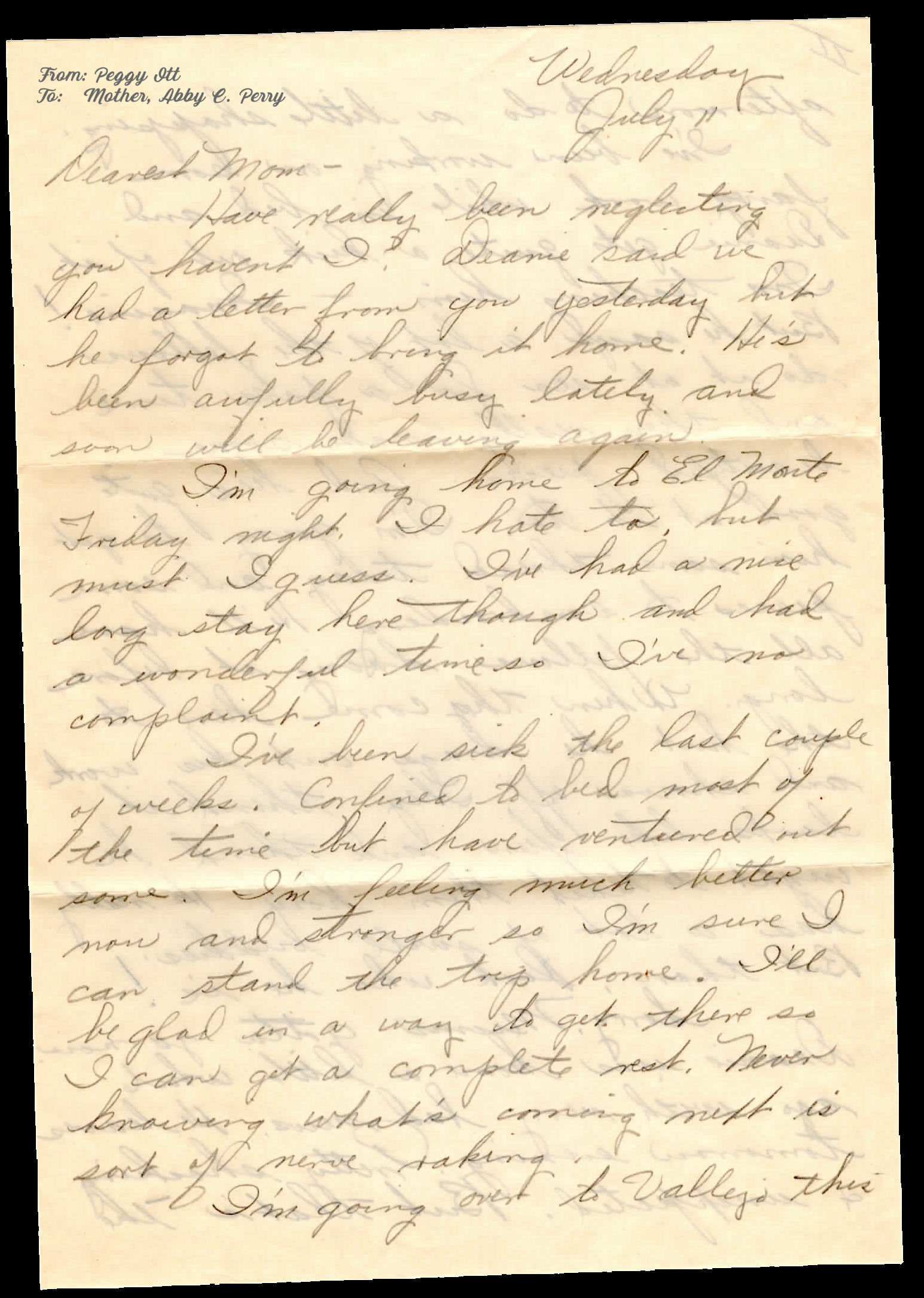 From: Peggy E. Ott To: Mother Abby Perry
